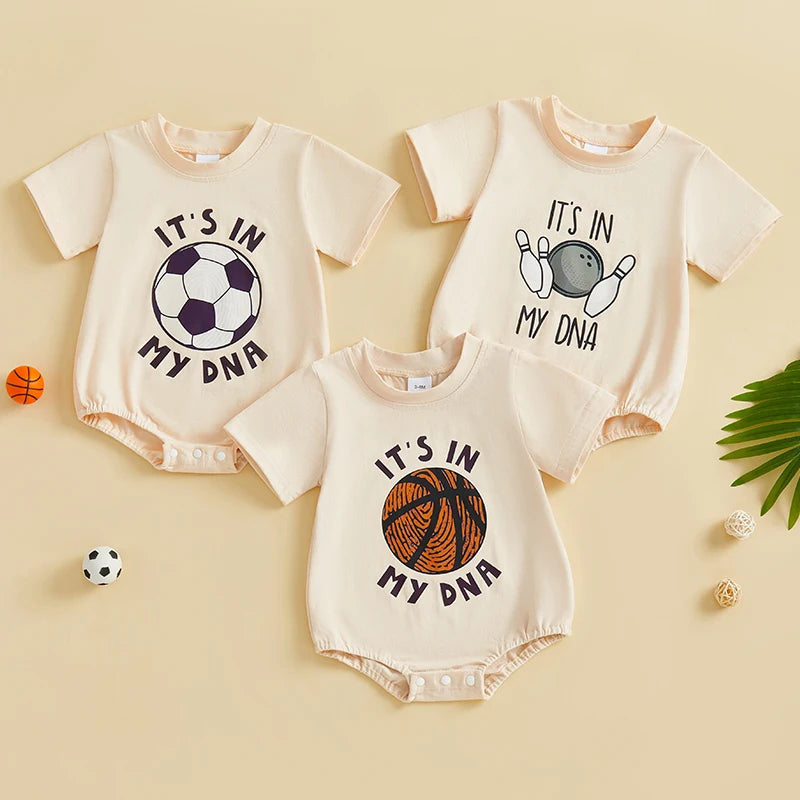 Adorable Sports Print: Features playful football, basketball, and bowling letter prints, perfect for baby boys’ daily casual style.