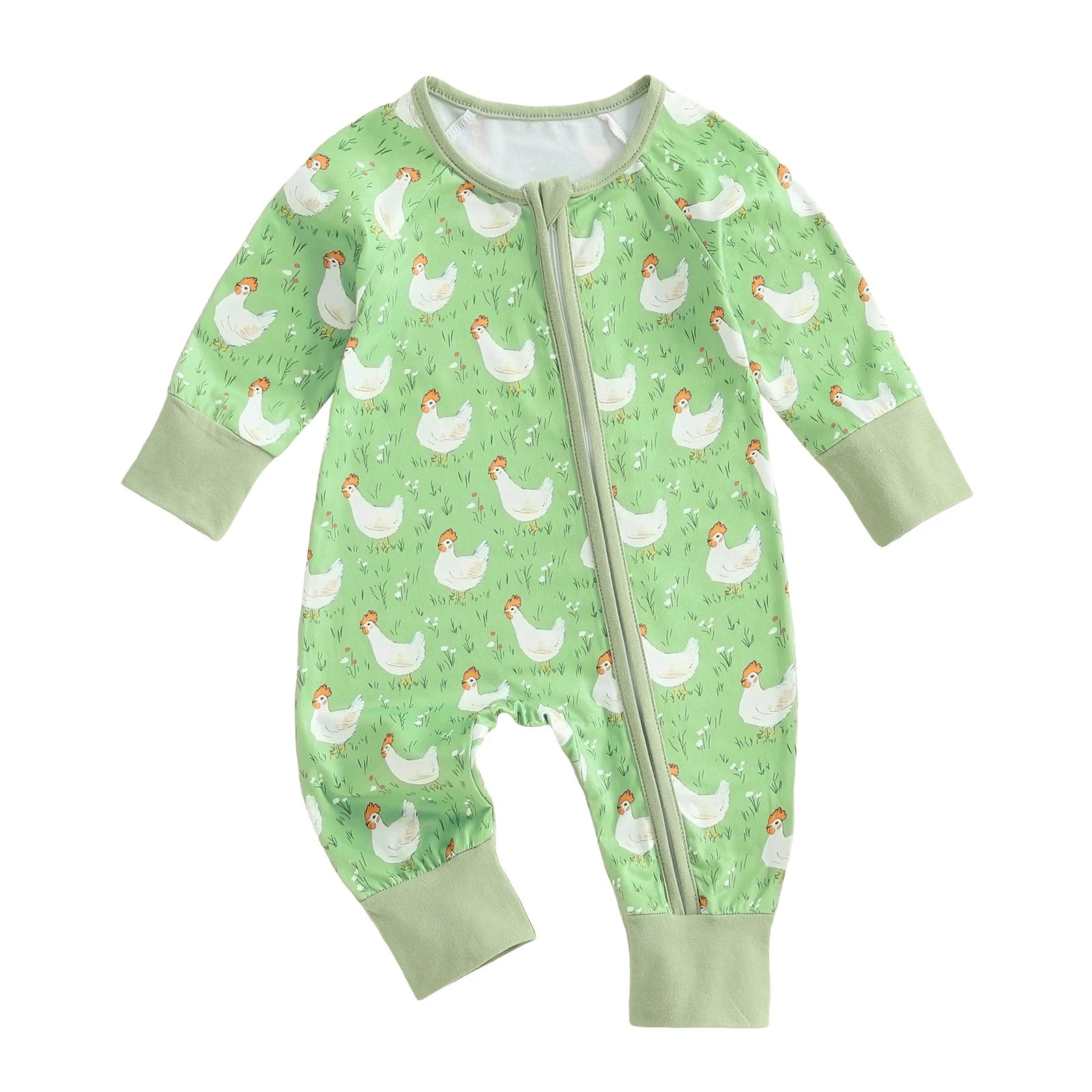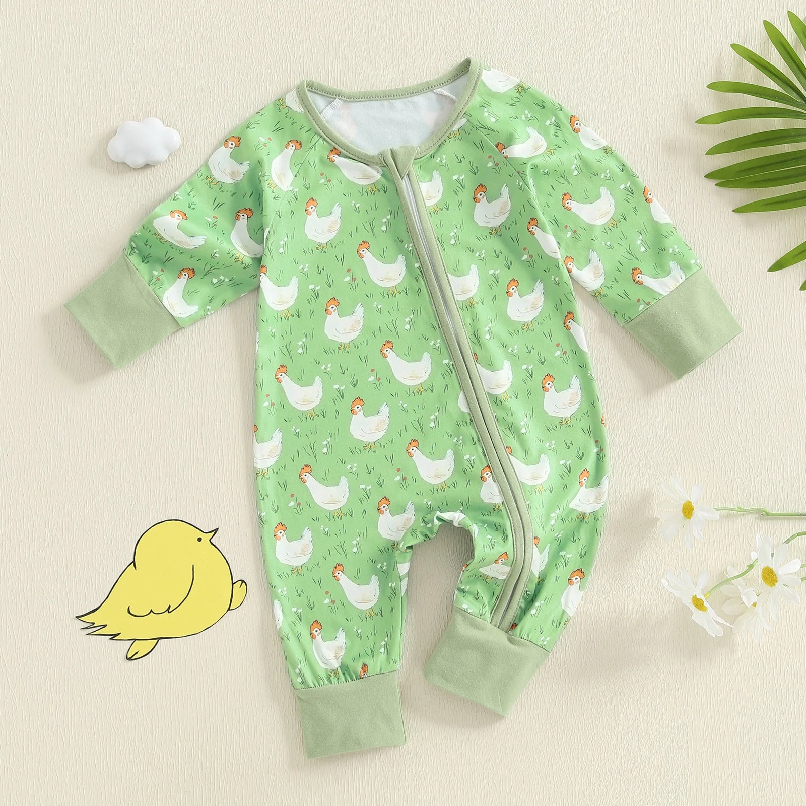 🐥 Why did the baby cross the road? To show off her adorable chicken-print romper, of course!